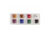 O kit vem com as seguintes cores: 996 Violet glow | 993 Brown glow | 994 Red glow | 991 Green glow | 992 Golden glow | 995 Blue glow | 101 Titanium white | 800 Mars black.