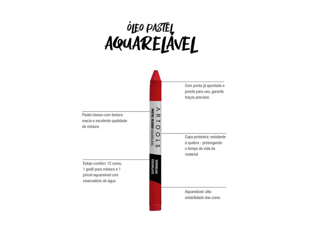 Calcule seu freteO Óleo Pastel Aquarelável combina textura macia, alto nível de pigmentaç ão e versatilidade para diferentes composições. Sua formulação especial permite técnicas de mistura e aquarela, proporcionando efeitos únicos. Além disso possui capa protetora que promove maior durabilidade e manté m a intensidade das cores.