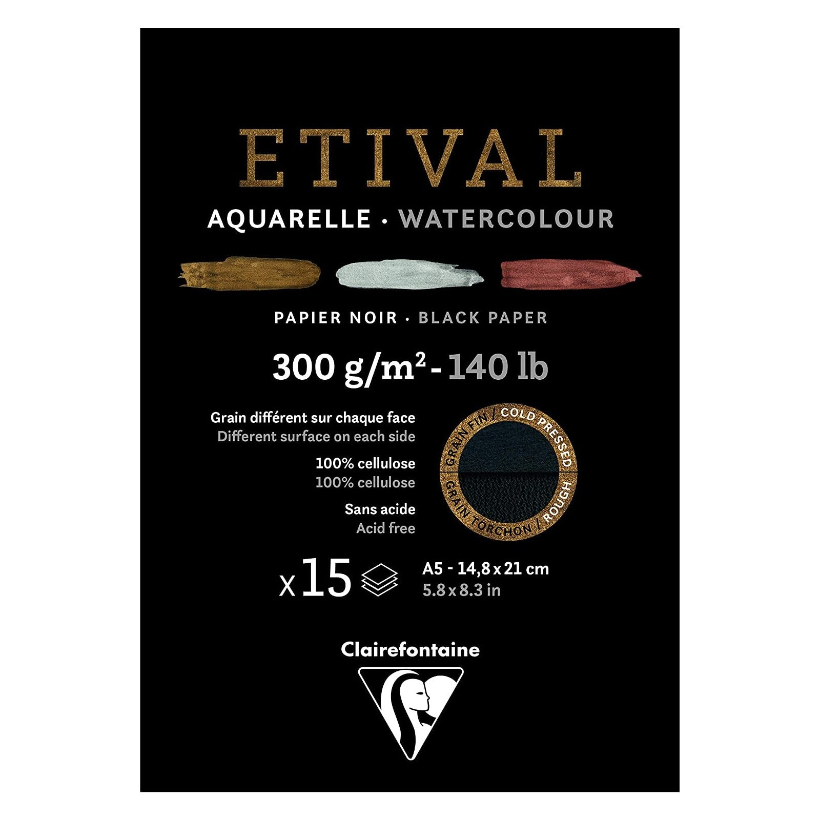 BLOCO CLAIREFONTAINE ETIVAL BLACK 300G/M2 A5 15 FLS
