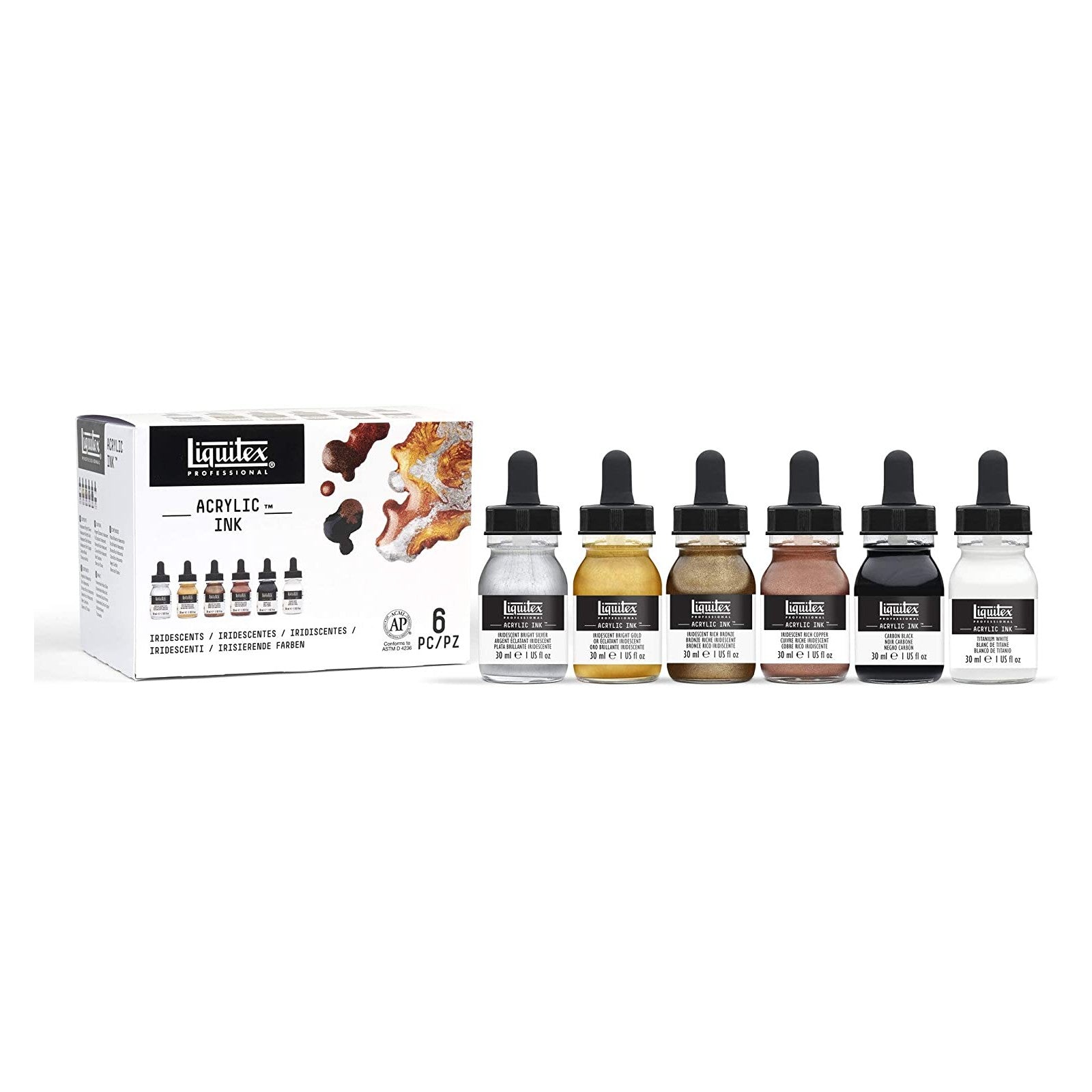 ESTOJO ACRILICA LIQUITEX INK! ACRYLIC 030ML C/ 06 METALIC