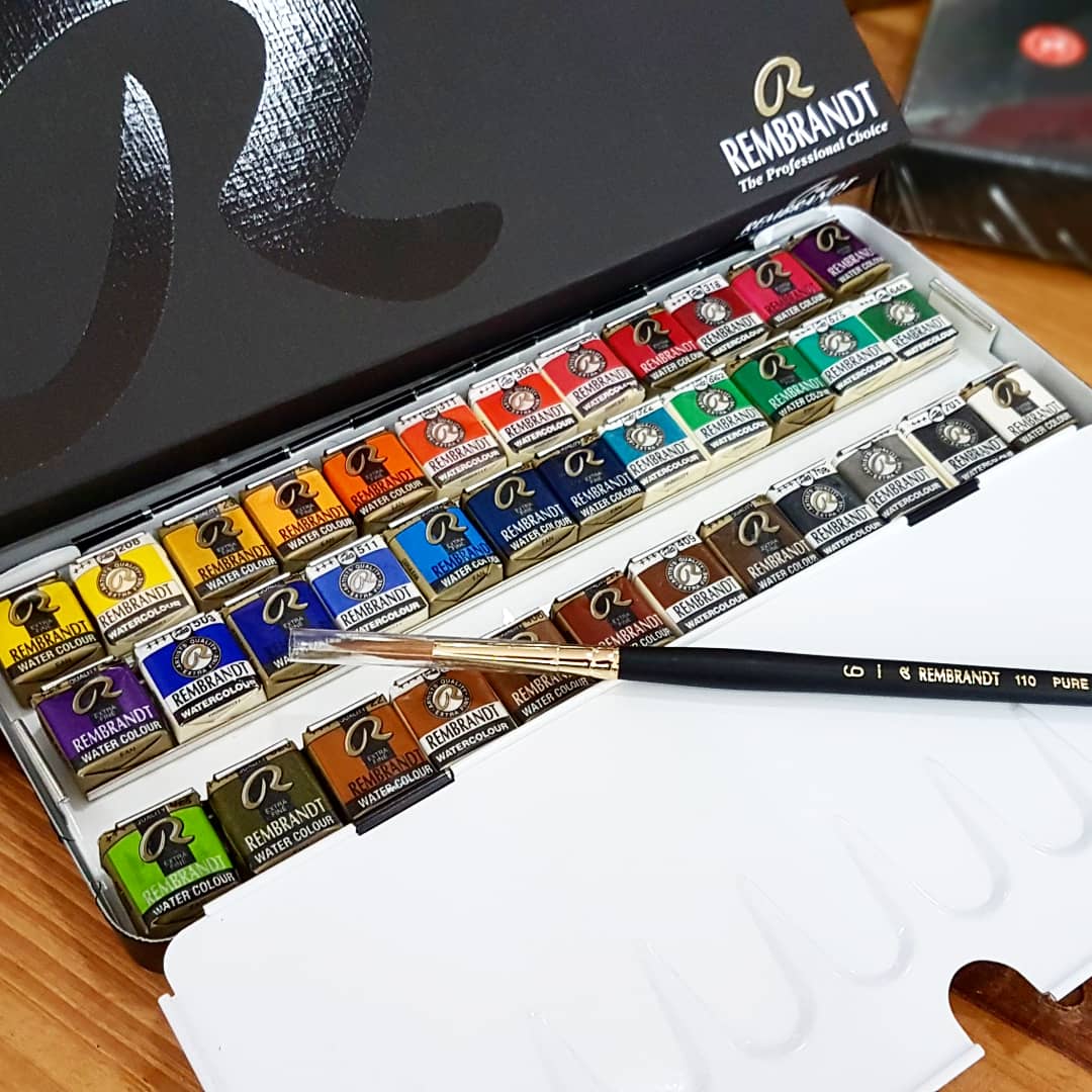 ESTOJO AQUARELA TALENS REMBRANDT 36 HALF PAN METAL BOX + BRU