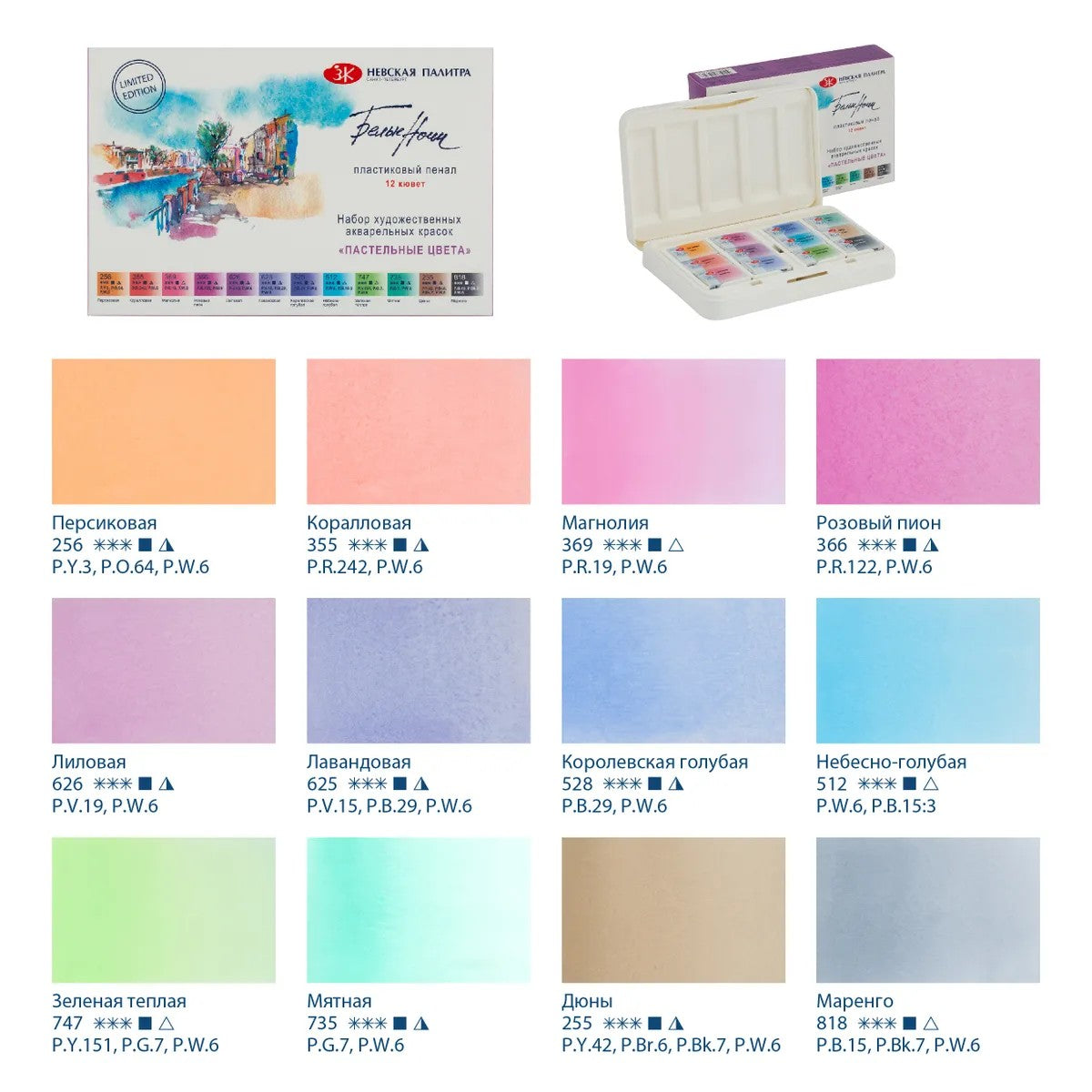 ESTOJO AQUARELA WHITE NIGHTS 12 PANS PASTEL SET 19421875
