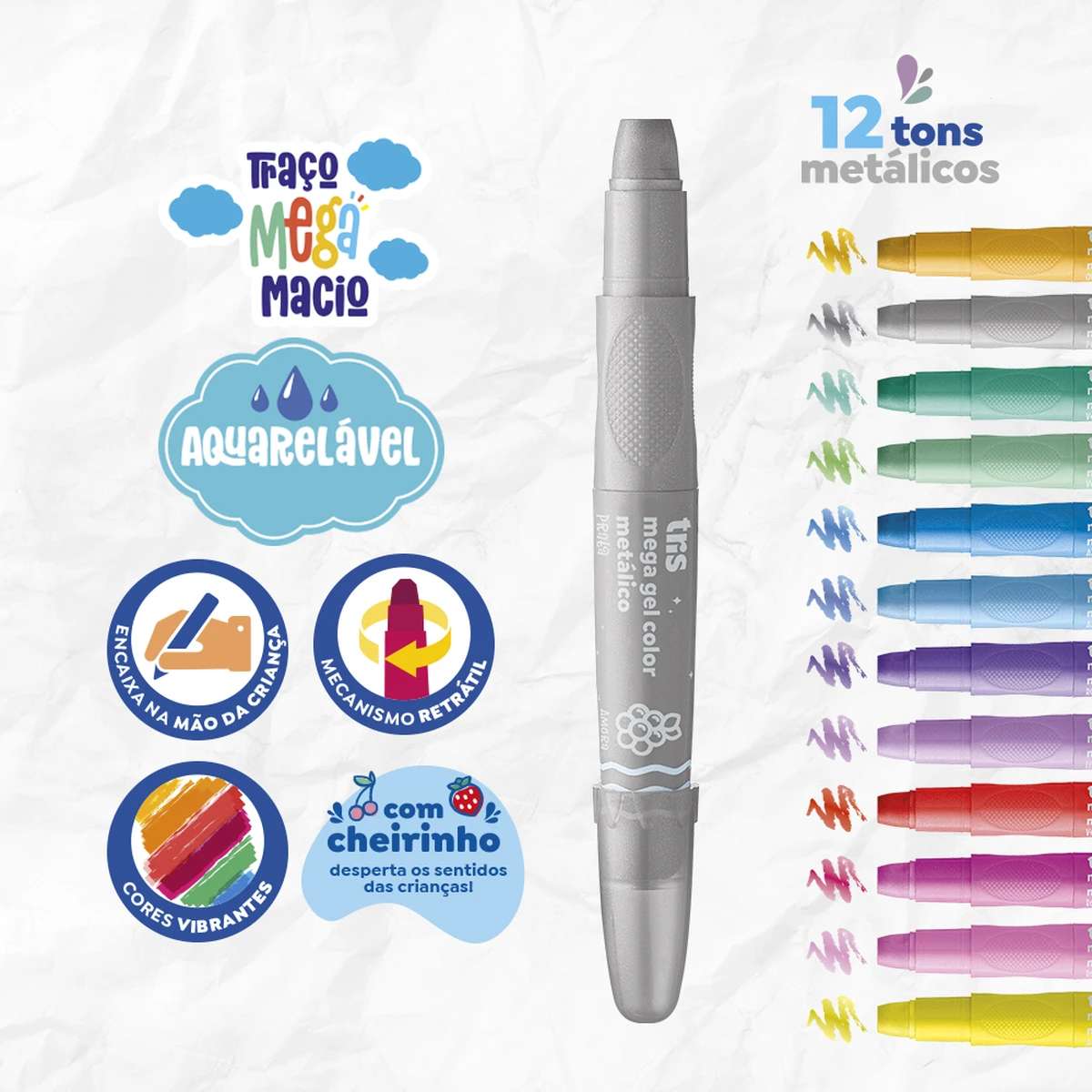 GIZ RETRATIL TRIS MEGA GEL COLOR METAL 12 CORES