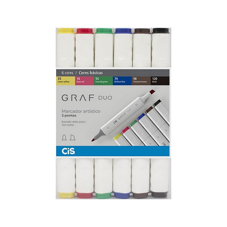 MARCADOR CIS GRAF DUO 06 TONS BASICOS PONTA DUPLA